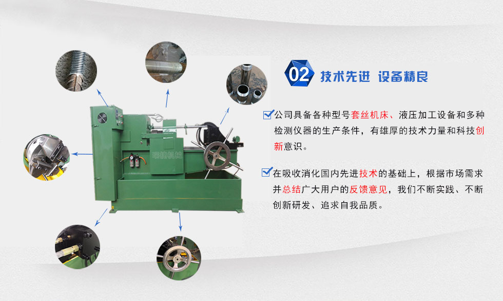 邢臺市瑞捷機(jī)械制造有限公司專業(yè)生產(chǎn)圓鋼套絲機(jī),鋼管套絲機(jī)兩大系列,其特點(diǎn)主要展現(xiàn)為機(jī)頭的優(yōu)化改進(jìn),大幅度提高了加工螺紋絲頭的精確度和工作效率,有效解決了本行業(yè)在加工絲扣上端部易扭轉(zhuǎn)變形(絲扣加易擴(kuò)口)、配件損耗高、加工效率低的技術(shù)難題。